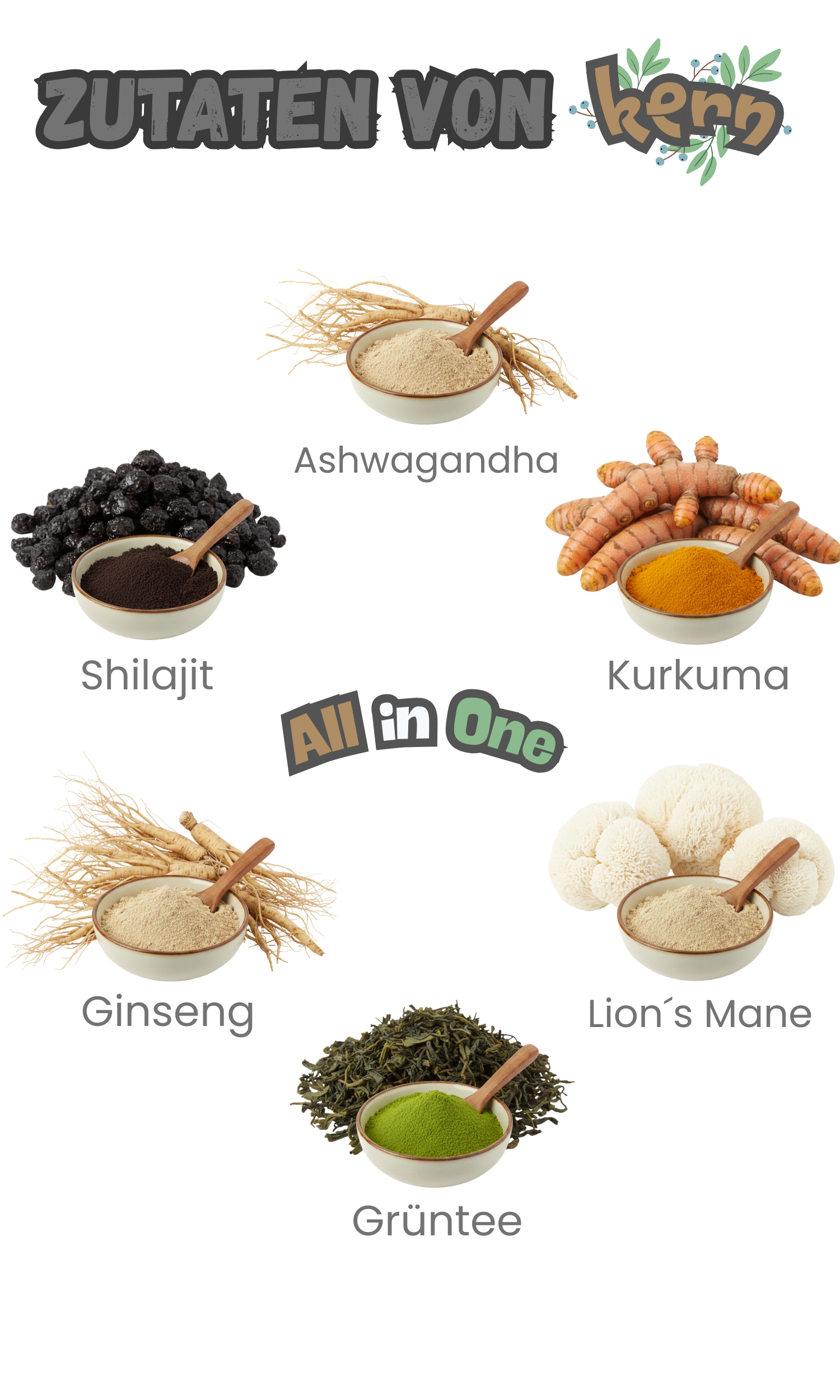 Ashwagandha, auch als Schlafbeere bekannt, wird traditionell als Adaptogen geschätzt. Es trägt dazu bei, die Widerstandskraft des Körpers gegen Stress zu verbessern und unterstützt die emotionale Balance. Zudem hilft Ashwagandha dabei, das Einschlafen zu unterstützen und körperliche sowie geistige Entspannung zu fördern.